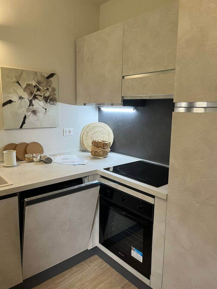 Baby high chair, Coffee machine, Cooking utensils, Dishwasher, Kitchen stove, Kitchenette, Oven, Refrigerator